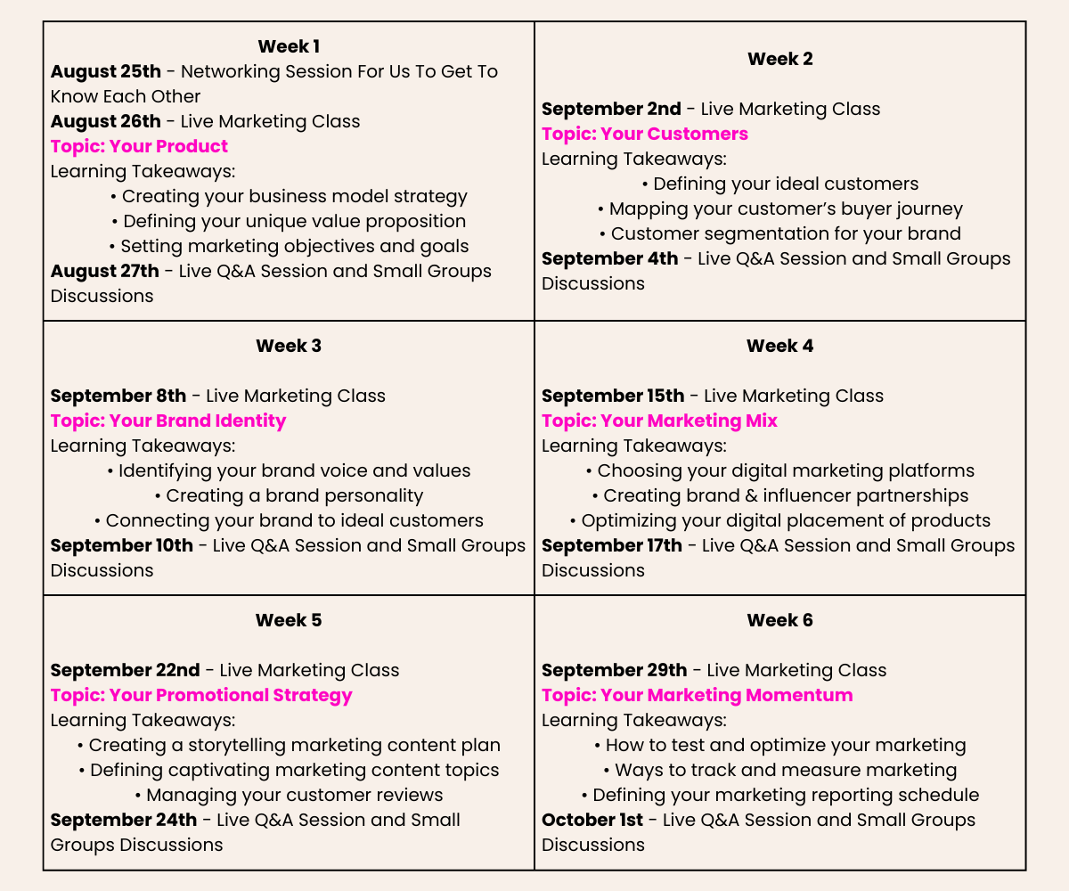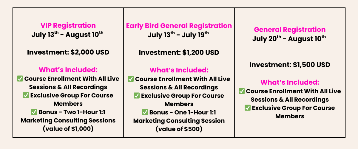 Registration Has ClosedDo I need previous marketing experience? Nope! This course doesn’t require previous marketing experience! All levels of marketing are welcome to participate!